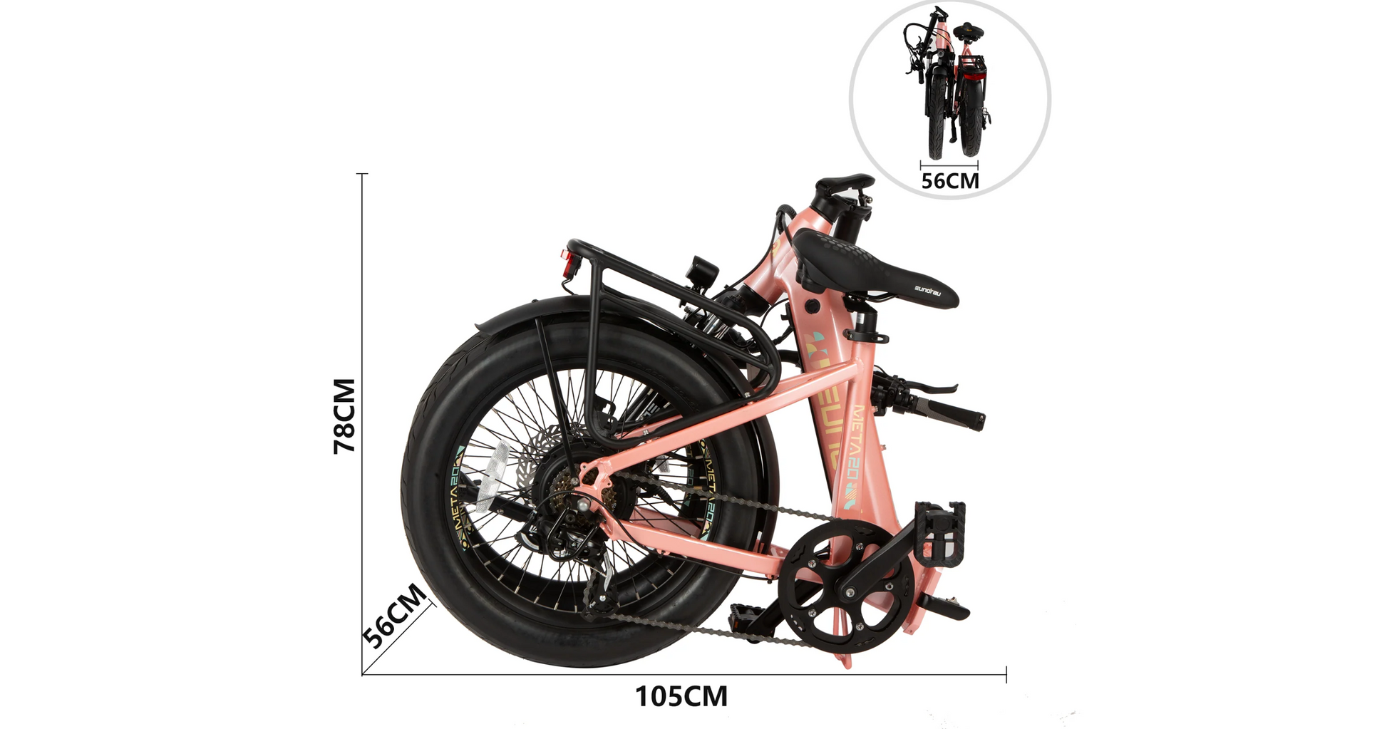 Discover the convenience and extended range of the META Foldable E-Bike's dual battery design. This feature allows for longer rides with seamless battery transition, reducing downtime. Enjoy longer rides with confidence, thanks to the innovative dual battery system.