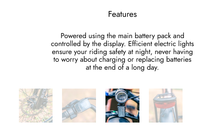 - Motor: 48V 500W hub motor with max 65 N.m torque